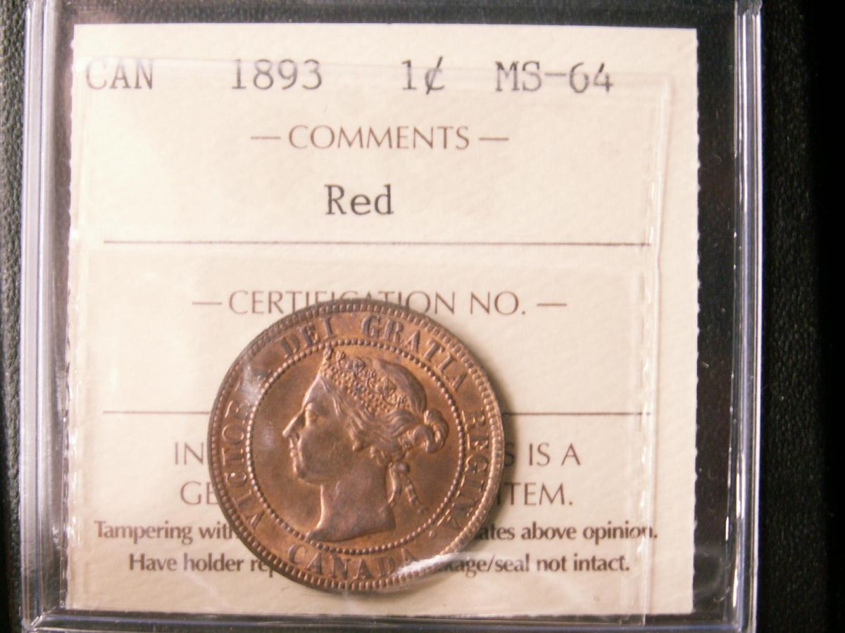 1893 1¢ ICCS MS64 RD. Attractive example with nice lustre and fields.