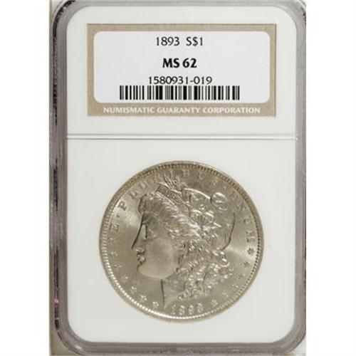 <B>1893 $1 MS62 NGC.</B></I> NGC Census: (323/1181). PCGS Population (634/2172). Mintage: 389,792. Numismedia Wsl. Price for NGC/PCGS coin in MS62: $700. (#7220)<BR><BR><B>Coin Engraver:</B> George T. Morgan<BR><BR><b>Shipping:</b> Coins & Currency (<a target="_blank" href="http://www.heritageauctions.com/common/shipping.php">view shipping information</a>\)