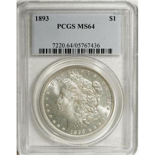 <B>1893 $1 MS64 PCGS.</B></I> While its S-mint counterpart attracts more attention, the 1893 presents its own challenges and has a mintage of under 400,000 pieces. This well struck, strongly lustrous representative displays delicate gold, rose, and blue tints.<BR><BR><B>Coin Engraver:</B> George T. Morgan<BR><BR><b>Shipping:</b> Coins & Currency (<a target="_blank" href="http://www.heritageauctions.com/common/shipping.php">view shipping information</a>)