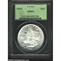 <TR><TD width="100%"><TABLE cellSpacing=1 cellPadding=3 width="100%" border=0><TBODY><TR><TD width="100%" bgColor=#79735c><FONT face=arial color=#ffffff size=3><B>Description</B> </FONT></TD></TR><TR><TD width="100%" bgColor=#ffffff><FONT face=arial size=2><B>1893 $1 MS64 PCGS.</B></I> Only a few small abrasions are noted on the cheek of Liberty, with one rather heavy mark on her chin, while the reverse is virtually devoid of contact remnants. Very sharply struck and an overall pleasing example of this scarcer and always popular date. </FONT></TD></TR></TBODY></TABLE></TD></TR></TBODY></TABLE><BR><A name=PricesRealized></A><TABLE cellSpacing=0 cellPadding=0 width="100%" bgColor=#000000 border=0><TBODY><TR><TD width="100%"><TABLE cellSpacing=1 cellPadding=3 width="100%" border=0><TBODY><TR><TD width="100%" bgColor=#79735c><A name=PR><FONT face=arial color=#ffffff size=3><B>Previous Prices from Heritage Auctions</B> </FONT></A></TD></TR><TR><TD bgColor=#f6f6ed><TABLE cellSpacing=0 cellPadding=0 width="100%" border=1><TBODY><TR><TD align=middle width="33%"><B>Date</B></TD><TD align=middle width="33%"><B>Service</B></TD><TD align=middle width="33%"><B>Price</B></TD></TR><TR bgColor=whitesmoke><TD width="33%"><B>08/08/2001</B></TD><TD width="33%">PCGS</TD><TD width="33%">$960.25</TD></TR><TR bgColor=whitesmoke><TD width="33%"><B>06/19/2001</B></TD><TD width="33%">PCGS</TD><TD width="33%">$950.00</TD></TR><TR bgColor=whitesmoke><TD width="33%"><B>05/01/1999</B></TD><TD width="33%">PCGS</TD><TD width="33%">$1,380.00</TD></TR><TR bgColor=whitesmoke><TD width="33%"><B>05/01/1999</B></TD><TD width="33%">PCGS</TD><TD width="33%">$1,093.00</TD></TR><TR bgColor=whitesmoke><TD width="33%"><B>03/01/2000</B></TD><TD width="33%">PCGS</TD><TD width="33%">$1,035.00</TD></TR><TR bgColor=whitesmoke><TD width="33%"><B>06/01/1998</B></TD><TD width="33%">PCGS</TD><TD width="33%">$1,320.00</TD></TR><TR bgColor=whitesmoke><TD width="33%"><B>01/07/2000</B></TD><TD width="33%">PCGS</TD><TD width="33%">$1,610.00</TD></TR><TR bgColor=whitesmoke><TD width="33%"><B>03/18/1998</B></TD><TD width="33%">PCGS</TD><TD width="33%">$962.50</TD></TR><TR bgColor=whitesmoke><TD width="33%"><B>10/01/1993</B></TD><TD width="33%">PCGS</TD><TD width="33%">$935.00</TD></TR><TR bgColor=whitesmoke><TD width="33%"><B>04/30/1993</B></TD><TD width="33%">PCGS</TD><TD width="33%">$880.00</TD></TR><TR bgColor=whitesmoke><TD width="33%"><B>11/19/1999</B></TD><TD width="33%">PCGS</TD><TD width="33%">$891.25</TD></TR><TR bgColor=whitesmoke><TD width="33%"><B>01/08/2000</B></TD><TD width="33%">PCGS</TD><TD width="33%">$862.50</TD></TR><TR bgColor=whitesmoke><TD width="33%"><B>10/05/1994</B></TD><TD width="33%">PCGS</TD><TD width="33%">$880.00</TD></TR><TR bgColor=whitesmoke><TD width="33%"><B>11/12/1993</B></TD><TD width="33%">PCGS</TD><TD width="33%">$907.50</TD></TR><TR bgColor=whitesmoke><TD width="33%"><B>01/10/1998</B></TD><TD width="33%">PCGS</TD><TD width="33%">$1,207.50</TD></TR><TR bgColor=whitesmoke><TD width="33%"><B>12/31/2002</B></TD><TD width="33%">PCGS</TD><TD width="33%">$977.50</TD></TR><TR bgColor=whitesmoke><TD width="33%"><B>11/26/2002</B></TD><TD width="33%">PCGS</TD><TD width="33%">$1,063.75</TD></TR><TR bgColor=whitesmoke><TD width="33%"><B>10/08/2002</B></TD><TD width="33%">PCGS</TD><TD width="33%">$1,092.50</TD></TR><TR bgColor=whitesmoke><TD width="33%"><B>09/28/2002</B></TD><TD width="33%">PCGS</TD><TD width="33%">$1,150.00</TD></TR><TR bgColor=whitesmoke><TD width="33%"><B>09/10/2002</B></TD><TD width="33%">PCGS</TD><TD width="33%">$1,121.25</TD></TR><TR bgColor=whitesmoke><TD width="33%"><B>06/01/2001</B></TD><TD width="33%">PCGS</TD><TD width="33%">$1,610.00</TD></TR><TR bgColor=whitesmoke><TD width="33%"><B>10/01/2001</B></TD><TD width="33%">PCGS</TD><TD width="33%">$1,092.00</TD></TR><TR bgColor=whitesmoke><TD width="33%"><B>06/08/2002</B></TD><TD width="33%">PCGS</TD><TD width="33%">$1,552.50</TD></TR><TR bgColor=whitesmoke><TD width="33%"><B>04/27/2002</B></TD><TD width="33%">PCGS</TD><TD width="33%">$920.00</TD></TR><TR bgColor=whitesmoke><TD width="33%"><B>01/22/2002</B></TD><TD width="33%">PCGS</TD><TD width="33%">$1,150.00</TD></TR><TR bgColor=whitesmoke><TD width="33%"><B>05/05/2000</B></TD><TD width="33%">PCGS</TD><TD width="33%">$948.75</TD></TR><TR bgColor=whitesmoke><TD width="33%"><B>01/05/2001</B></TD><TD width="33%">PCGS</TD><TD width="33%">$977.50</TD></TR><TR bgColor=whitesmoke><TD width="33%"><B>03/02/2000</B></TD><TD width="33%">PCGS</TD><TD width="33%">$862.50</TD></TR><TR bgColor=whitesmoke><TD width="33%"><B>09/01/1996</B></TD><TD width="33%">PCGS</TD><TD width="33%">$1,650.00</TD></TR><TR bgColor=whitesmoke><TD width="33%"><B>02/01/1998</B></TD><TD width="33%">PCGS</TD><TD width="33%">$924.00</TD></TR><TR bgColor=whitesmoke><TD width="33%"><B>10/01/1998</B></TD><TD width="33%">PCGS</TD><TD width="33%">$797.00</TD></TR><TR bgColor=whitesmoke><TD width="33%"><B>04/01/1999</B></TD><TD width="33%">PCGS</TD><TD width="33%">$1,100.00</TD></TR><TR bgColor=whitesmoke><TD width="33%"><B>11/01/1999</B></TD><TD width="33%">PCGS</TD><TD width="33%">$891.00</TD></TR><TR bgColor=whitesmoke><TD width="33%"><B>05/01/1997</B></TD><TD width="33%">PCGS</TD><TD width="33%">$880.00</TD></TR><TR bgColor=whitesmoke><TD width="33%"><B>01/12/2002</B></TD><TD width="33%">PCGS</TD><TD width="33%">$977.50</TD></TR><TR bgColor=whitesmoke><TD width="33%"><B>11/27/2001</B></TD><TD width="33%">PCGS</TD><TD width="33%">$1,000.00</TD></TR><TR bgColor=whitesmoke><TD width="33%"><B>11/15/2001</B></TD><TD width="33%">PCGS</TD><TD width="33%">$920.00</TD></TR><TR bgColor=whitesmoke><TD width="33%"><B>10/06/2001</B></TD><TD width="33%">PCGS</TD><TD width="33%">$1,035.00</TD></TR><TR bgColor=whitesmoke><TD width="33%"><B>03/23/2003</B></TD><TD width="33%">PCGS</TD><TD width="33%">$977.50</TD></TR><TR bgColor=whitesmoke><TD width="33%"><B>09/23/1998</B></TD><TD width="33%">NGC</TD><TD width="33%">$990.00</TD></TR><TR bgColor=whitesmo