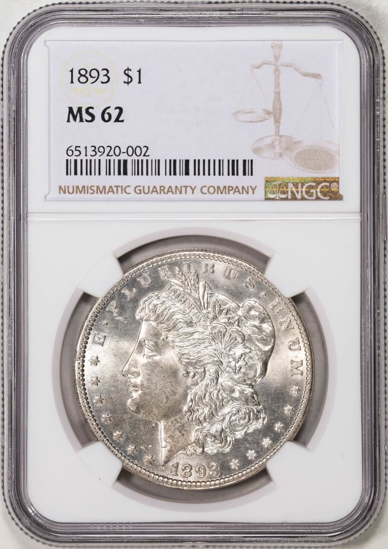 One 1893 $1 Morgan Silver Dollar Coin NGC MS62. NGC Certified.