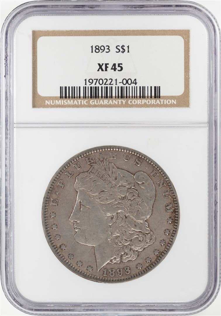 One 1893 $1 Morgan Silver Dollar Coin NGC XF45. NGC Certified.