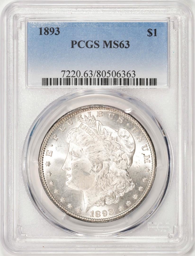 One 1893 $1 Morgan Silver Dollar Coin PCGS MS63. PCGS Graded.