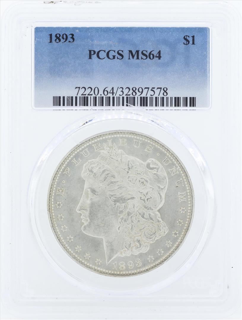 One 1893 $1 Morgan Silver Dollar Coin PCGS MS64. PCGS Graded.
