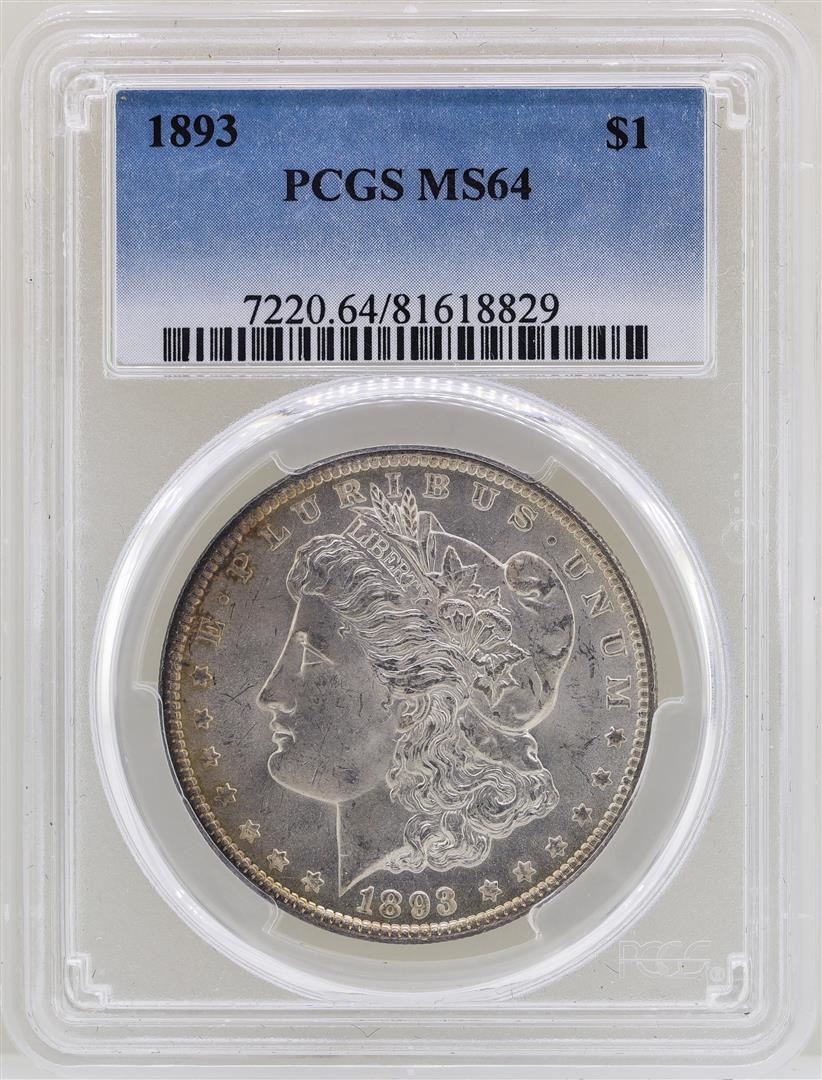 One 1893 $1 Morgan Silver Dollar Coin PCGS MS64. PCGS Graded.