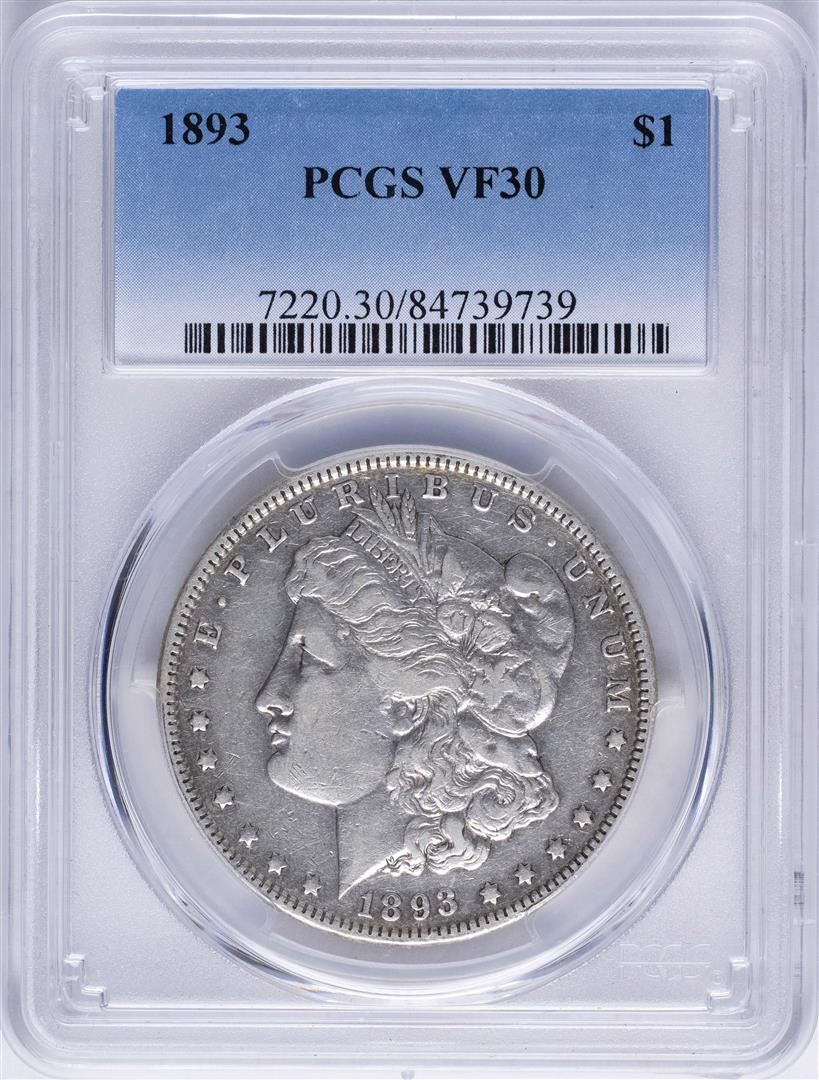 One 1893 $1 Morgan Silver Dollar Coin PCGS VF30. PCGS Graded.