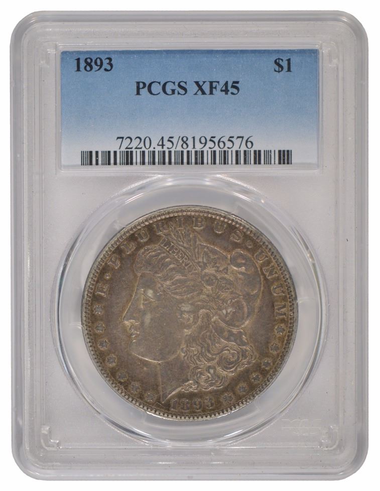 One 1893 $1 Morgan Silver Dollar Coin PCGS XF-45.