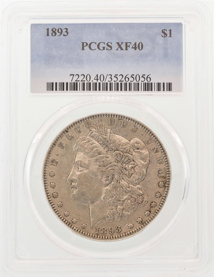 One 1893 $1 Morgan Silver Dollar Coin PCGS XF40. PCGS Graded.