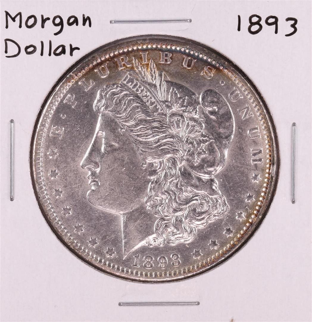 One 1893 $1 Morgan Silver Dollar Coin.