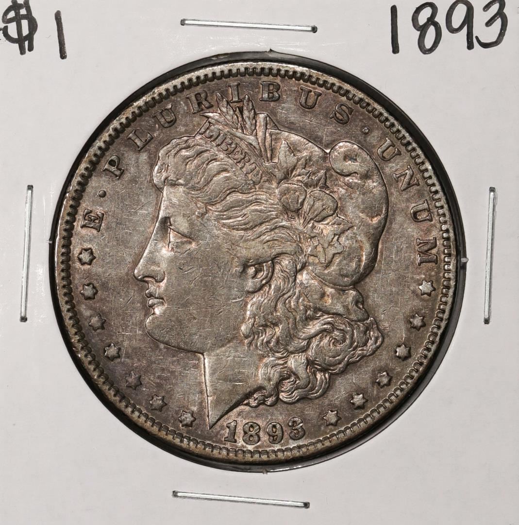 One 1893 $1 Morgan Silver Dollar Coin.
