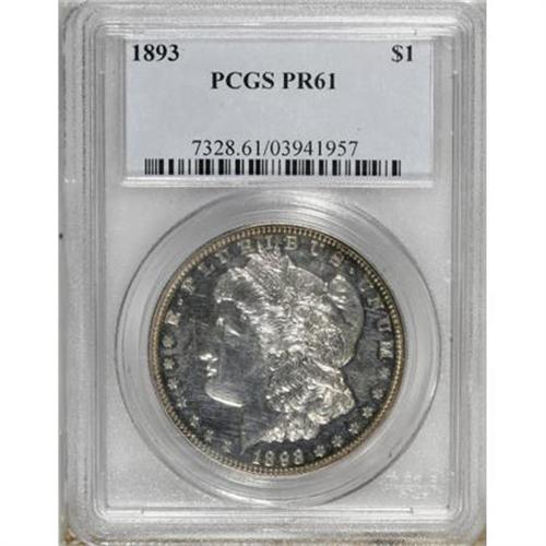 <B>1893 $1 PR61 PCGS.</B></I> Both sides of this brilliant proof have light silver color that is framed by a touch of iridescence limited to the extreme border on each side. A few light hairlines are as expected at the grade level, and the centers show minor inexactness of strike.<BR><BR><B>Coin Engraver:</B> George T. Morgan<BR><BR><b>Shipping:</b> Coins & Currency (<a target="_blank" href="http://www.heritageauctions.com/common/shipping.php">view shipping information</a>)