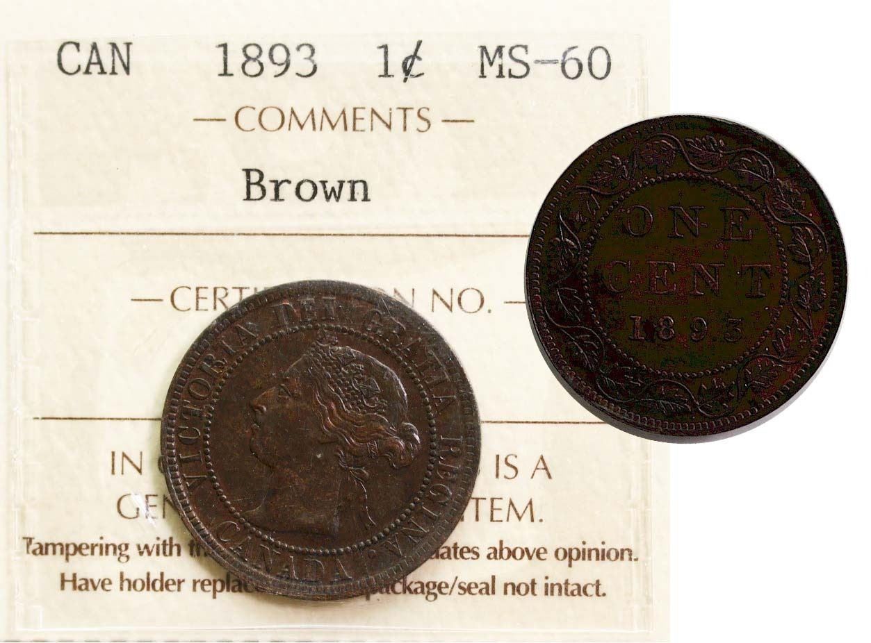 1893 1¢ " Wide 3" ICCS Mint State-60