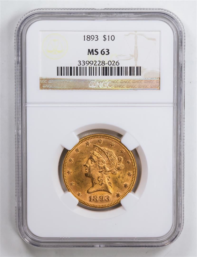 One 1893 $10 Eagle Gold Coin NGC MS63.