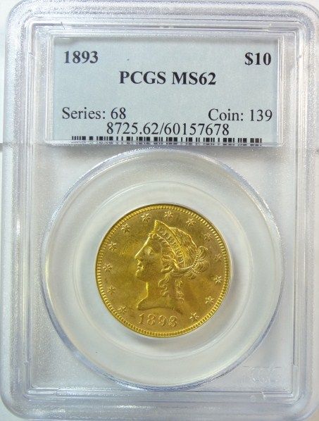 1893 $10 GOLD LIBERTY PCGS MS-62