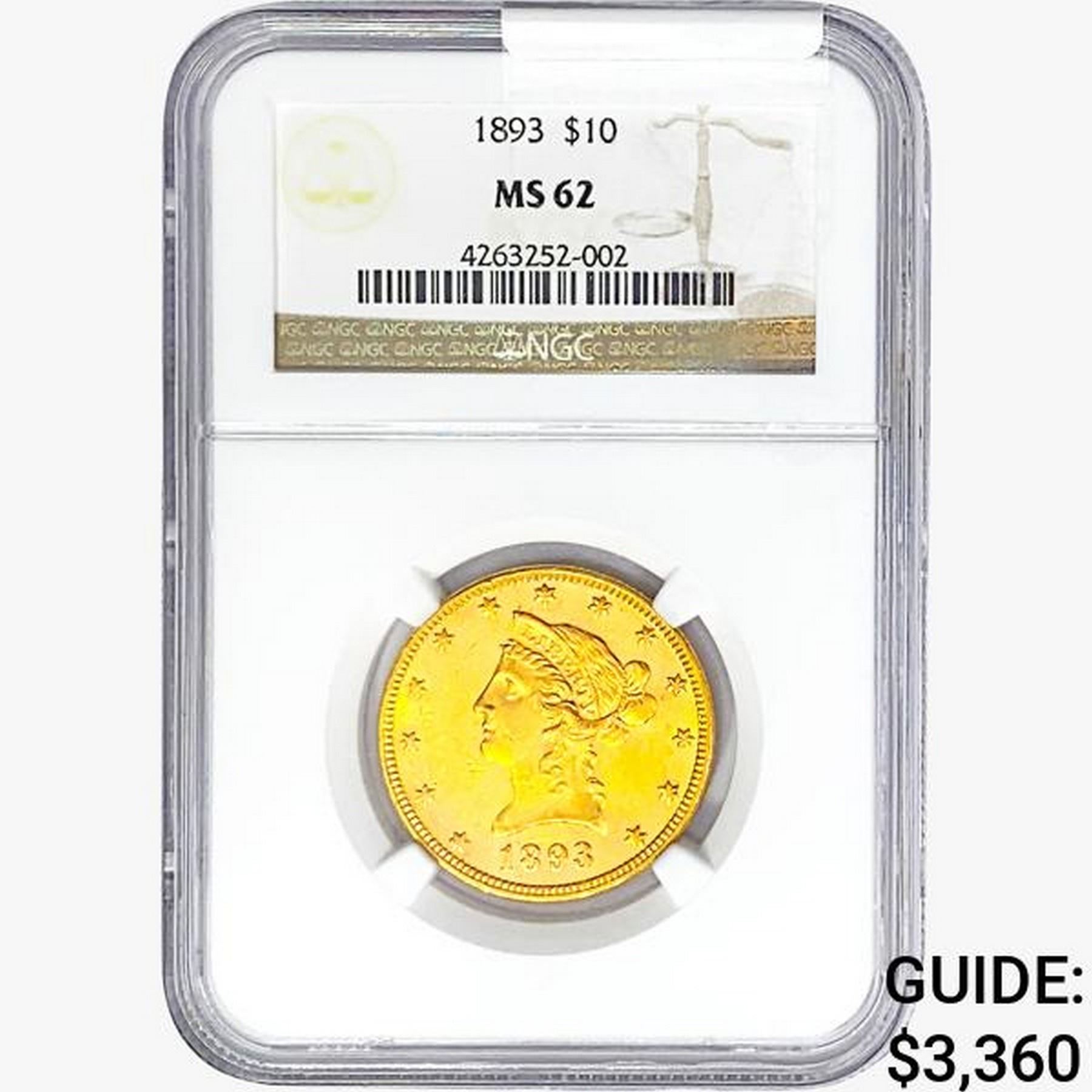 1893 $10 Gold Eagle NGC MS62