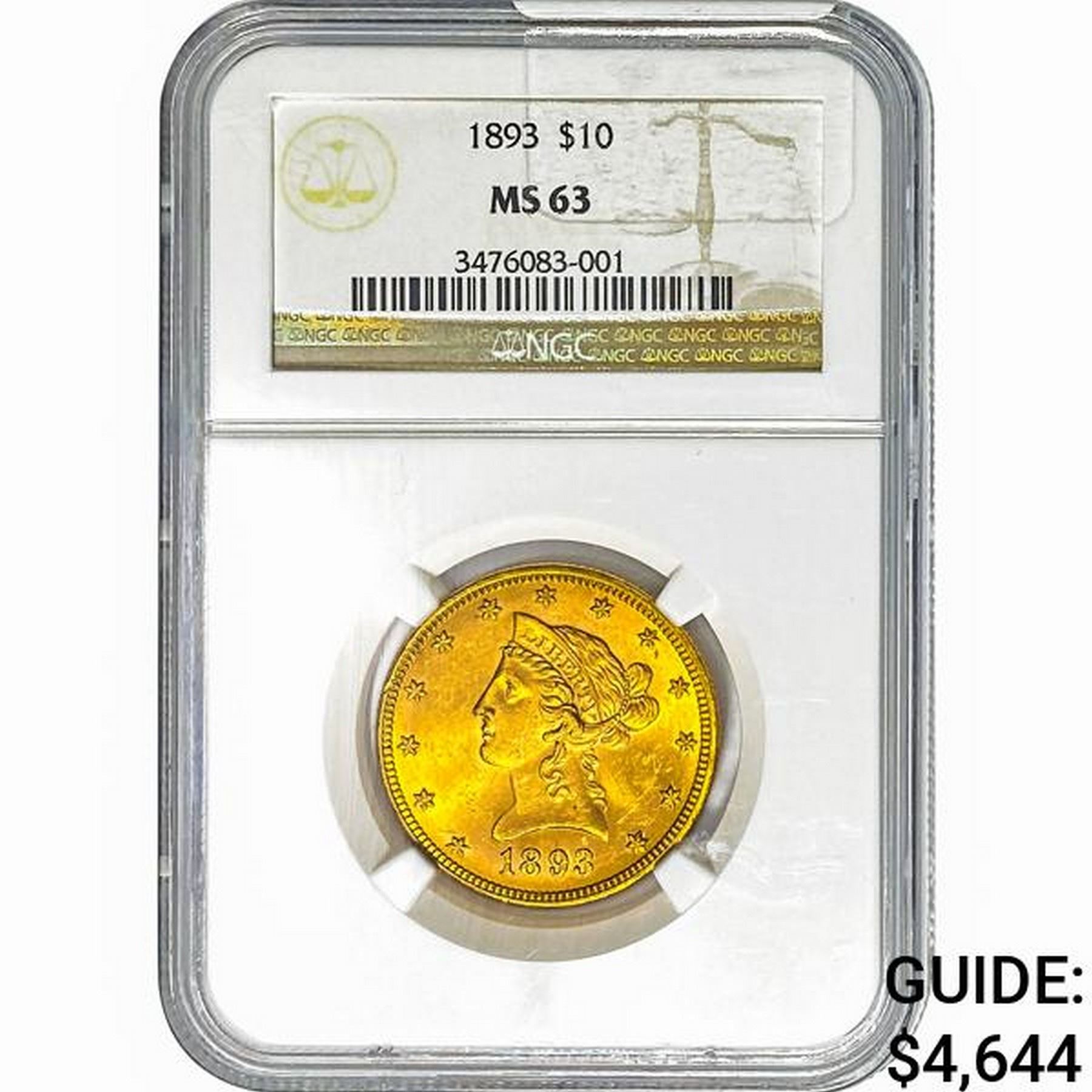 1893 $10 Gold Eagle NGC MS63