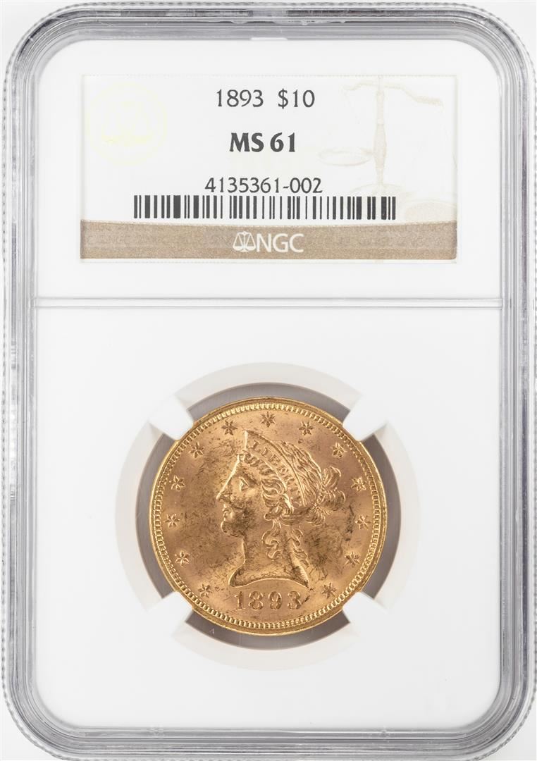 One 1893 $10 Liberty Head Eagle Gold Coin NGC MS61. NGC Certified.