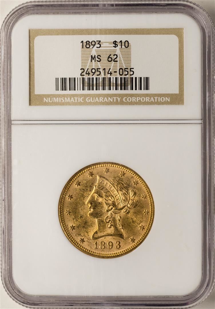 One 1893 $10 Liberty Head Eagle Gold Coin NGC MS62. NGC Certified.