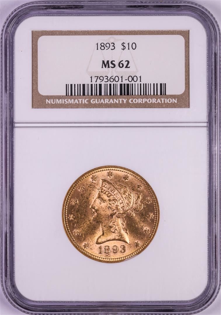 One 1893 $10 Liberty Head Eagle Gold Coin NGC MS62. NGC Certified.
