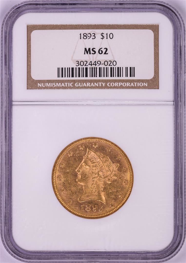 One 1893 $10 Liberty Head Eagle Gold Coin NGC MS62. NGC Certified.