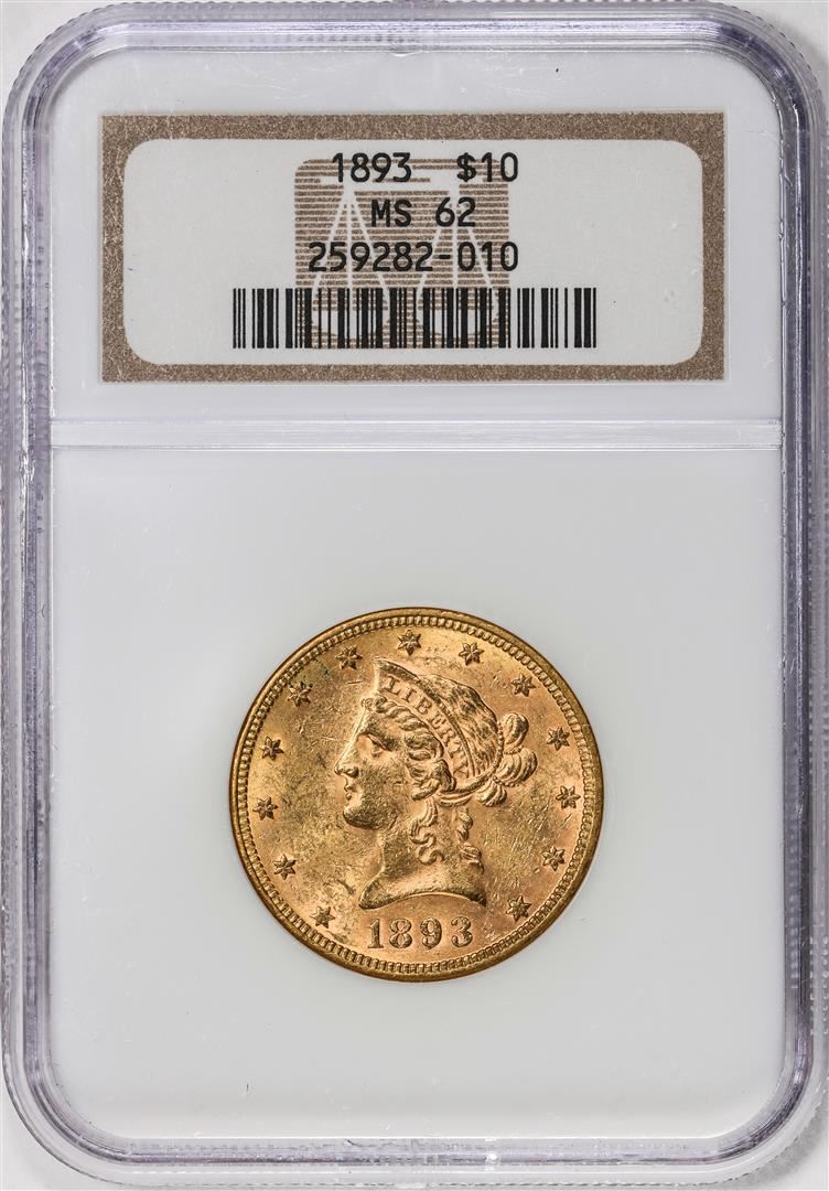 One 1893 $10 Liberty Head Eagle Gold Coin NGC MS62. NGC Certified.