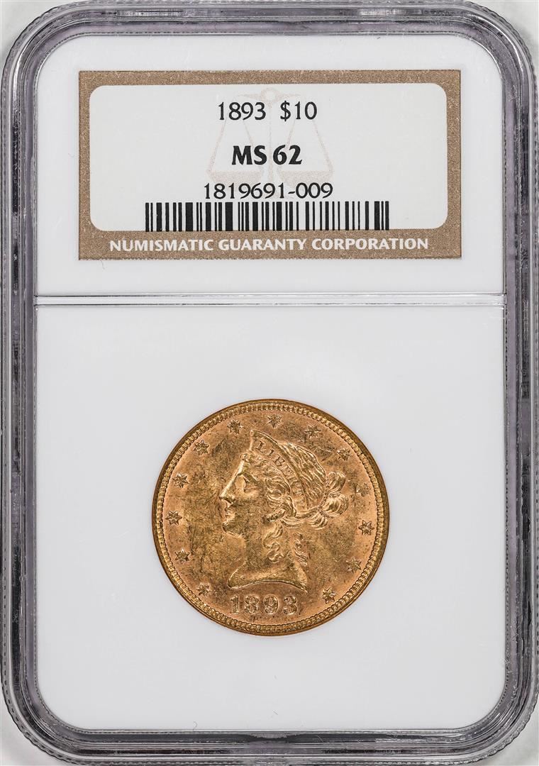 One 1893 $10 Liberty Head Eagle Gold Coin NGC MS62. NGC Certified.