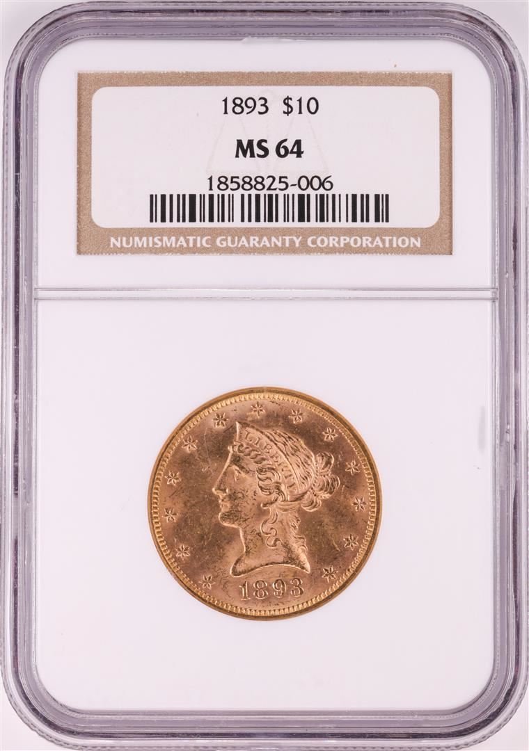 One 1893 $10 Liberty Head Eagle Gold Coin NGC MS64. NGC Certified.