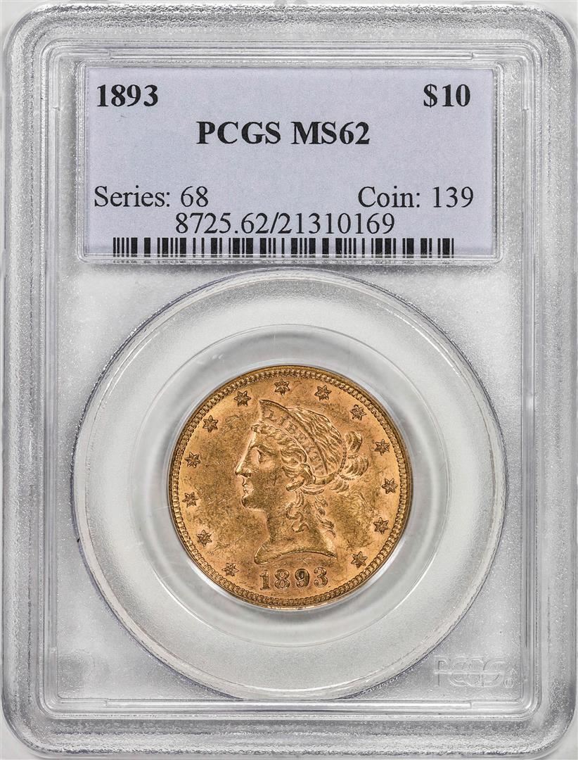 One 1893 $10 Liberty Head Eagle Gold Coin PCGS MS62. PCGS Graded.