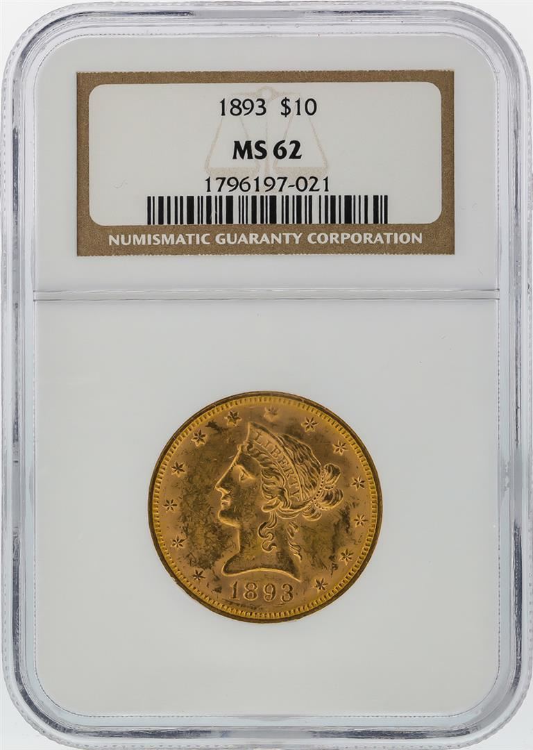 One 1893 $10 Liberty Head Gold Coin NGC Graded MS62. NGC Certified.
