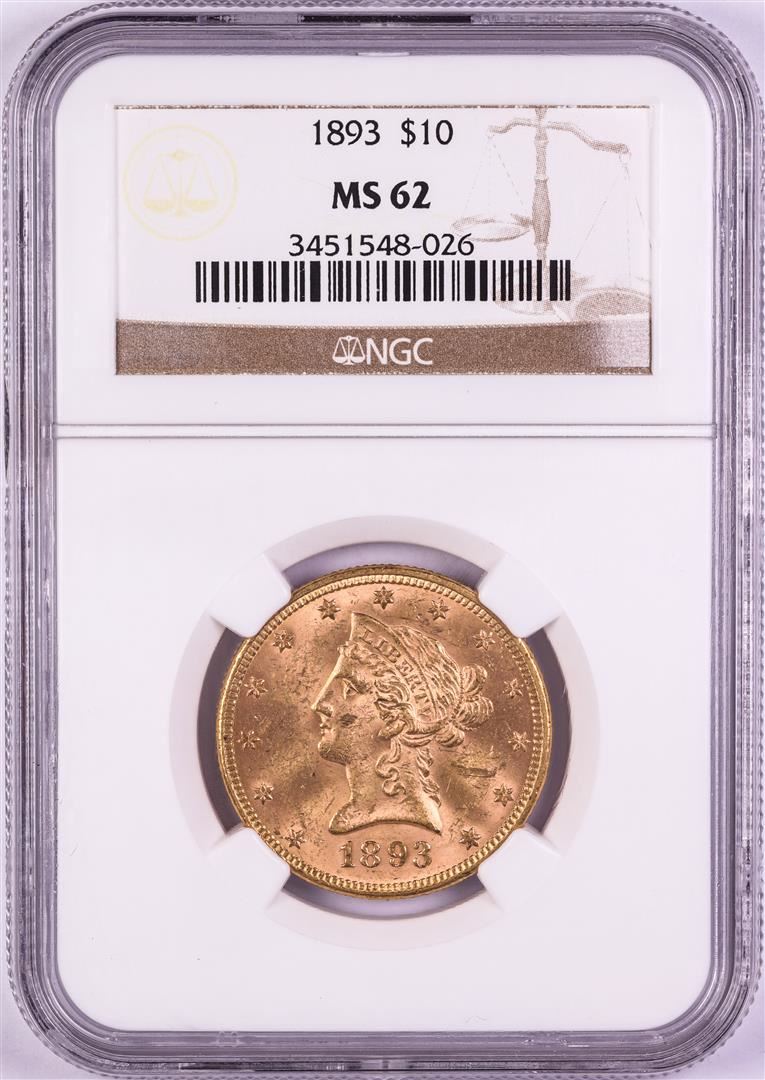 One 1893 $10 Liberty Head Half Eagle Gold Coin NGC MS62. NGC Certified.