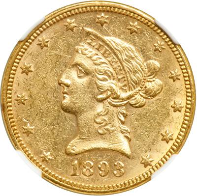 1893 $10 Liberty. NGC graded AU-58 (PCGS # 8725) .