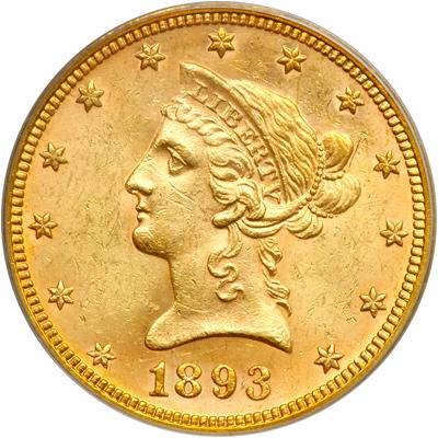 1893 $10 Liberty. PCGS graded MS-62. Lightly toned (PCGS # 8725) .