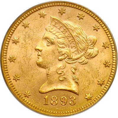 1893 $10 Liberty. PCGS graded MS-62. We note a few minor obverse hairlines (PCGS # 8725) .