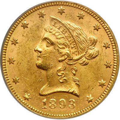 1893 $10 Liberty. PCGS graded MS-62. Frosty mint surfaces (PCGS # 8725) .