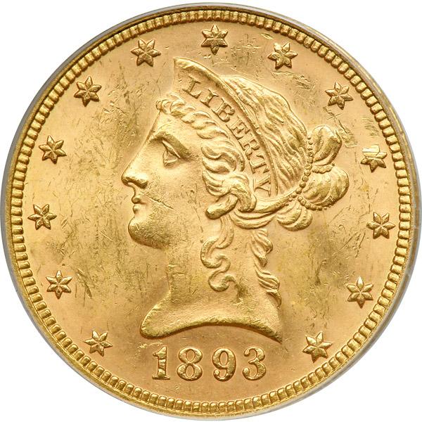 1893 $10 Liberty. PCGS graded MS-63. A pleasing example (PCGS # 8725) .