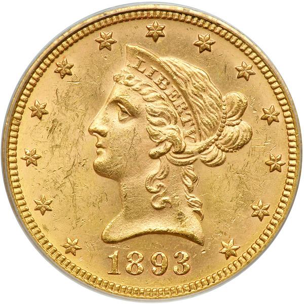1893 $10 Liberty. PCGS graded MS-62+. A nice bold strike (PCGS # 8725) .