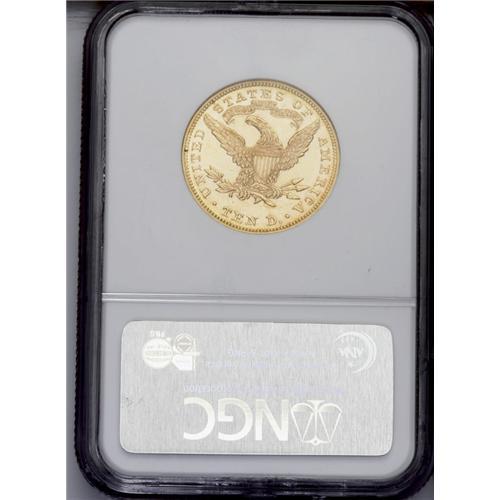 <B>1893<$10> MS63 Prooflike NGC.</B></I> A pretty piece, moderately reflective and strongly lustrous. The yellow-gold devices are boldly defined. Census: 7 in 63 Prooflike, 1 finer (9/06).