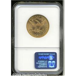<B>1893<$10> MS64 NGC.</B></I> Fully struck with excellent luster characteristics. A bright and attractive near-Gem type coin, only prohibited from the Gem category by a shallow scrape in the left reverse field. <BR><BR><B>Important notice:</B> Heritage usually auctions material at the rate of 200-250 lots per hour. On some occasions eBay Live bid software or the Internet may not be able to keep up with the pace of the auction. We recommend placing a realistic absentee bid now as insurance to avoid disappointment. Occasionally the auctioneer may eliminate or reject an eBay Live bid, and the auctioneer may also reopen a lot after the close of the eBay live bidding (usually because we missed an audience bid), and may reject your bid even if it shows you as the winning bidder. By bidding via eBay Live, you agree that Heritage may award the lot to another bidder at its sole discretion under the circumstances described above or any other reasonable circumstances. Since eBay bids are not shown to us until we open the lot on the floor, we treat those bids just like floor bids. In most cases the floor responds before the eBay bid is presented to us, due to Internet lag time, so for consistency we have made it a policy that floor bids are always considered first over tie eBay live bids. Also please note that all Heritage lots purchased through eBay Live carry a 20% Buyer's Premium. Please make sure you read the Terms and Conditions before you bid. </span></font></tr></table></td></tr></table>