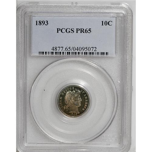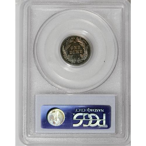 1893 10C PR65 PCGS. Delicate cobalt-blue, lavender, an
