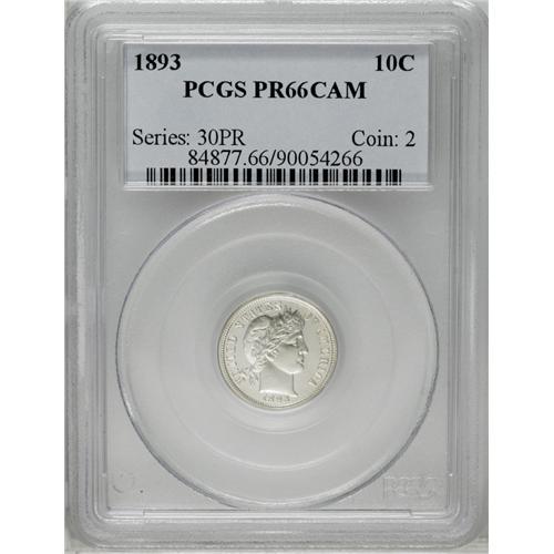 1893 10C PR66 Cameo PCGS. Flashy and brilliant, the fi 1893[10C] PR66 Cameo PCGS.