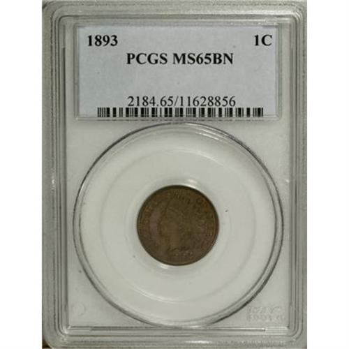 <B>1893 1C MS65 Brown PCGS.</B></I> PCGS Population (2/1). NGC Census: (35/4). Mintage: 46,642,196. Numismedia Wsl. Price for NGC/PCGS coin in MS65: $140. (#2184)<BR><BR><B>Coin Engraver:</B> James B. Longacre<BR><BR><b>Shipping:</b> Coins & Currency (<a target="_blank" href="http://www.heritageauctions.com/common/shipping.php">view shipping information</a>)