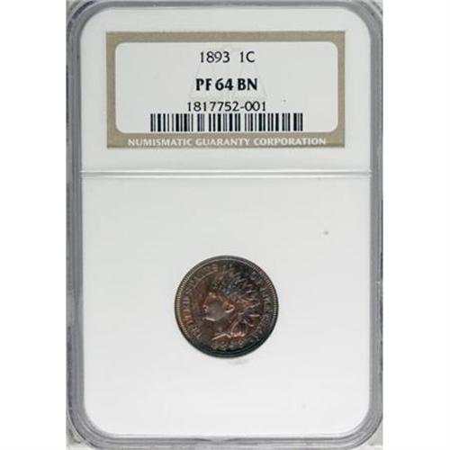 <B>1893 1C PR64 Brown NGC.</B></I> NGC Census: (14/18). PCGS Population (9/3). Mintage: 2,195. Numismedia Wsl. Price for NGC/PCGS coin in PR64: $180. (#2366)<BR><BR><B>Coin Engraver:</B> James B. Longacre<BR><BR><b>Shipping:</b> Coins & Currency (<a target="_blank" href="http://www.heritageauctions.com/common/shipping.php">view shipping information</a>\)