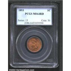 1893 1C MS64 Red PCGS. Slightly weak feather tips with a brilliant red reverse, slightly subdued red obverse, and only a few light spots on the obverse away from the Gem category. Important notice: We expect to be auctioning lots at the rate of 200-250 per hour. Sometimes eBay Premier live bid software cannot keep up with that pace, so we strongly recommend that you place a realistic proxy bid now as insurance to avoid disappointment. Also please note that all Heritage/CAA lots purchased through eBay Premier carry a 20% Buyer's Premium.