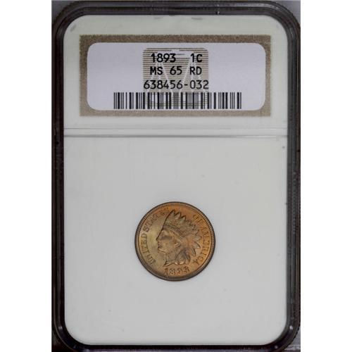 <B>1893<1C> MS65 Red NGC.</B></I> Coppery-gold patina overlays lustrous surfaces that are devoid of significant contact marks. A few obverse flecks are noted. Census: 71 in 65 Red, 24 finer (1/06).
