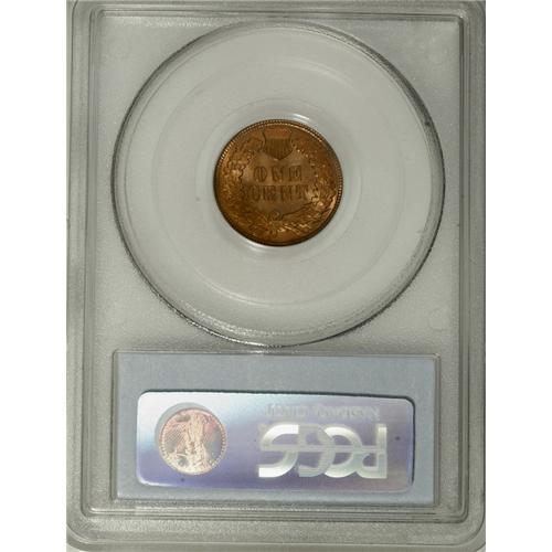 <B>1893 1C MS65 Red PCGS.</B></I> Effulgent cartwheel luster radiates from each side of this beautifully toned Gem, as variegated sunset-orange and lime-green hues compete for the viewer's attention. Boldly struck, if slightly weak on the upper three feather tips of the headdress, with a few tiny marks and minimal flyspecks for the grade. Population: 72 in 65 Red, 22 finer (4/07).<BR><BR><b>Shipping:</b> Coins & Currency (<a target="_blank" href="http://www.heritageauctions.com/common/shipping.php">view shipping information</a>)