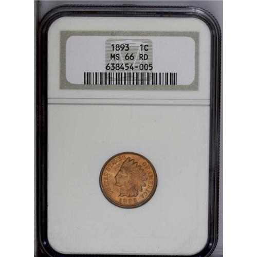 <B>1893<1C> MS66 Red NGC.</B></I> This is an eye-catching example due to its vivid, iridescent original red color. The luster is blazing, and the strike is very good. A few trivial toning specks are about all that separates this Gem from perfection. Population: 24 in 66, 1 finer (7/06).<BR><I>Ex: Peter Martinez Collection (Heritage, 1/02), lot 5559.</B></I><BR><I>From The Tigard Oregon Small Cent Collection.</B></I>