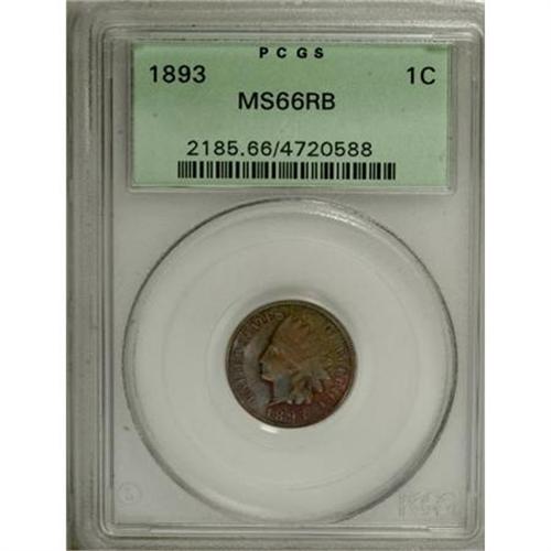<B>1893 1C MS66 Red and Brown PCGS.</B></I> Deep orange-red, powder-blue, and aquamarine invigorate this thoroughly lustrous Premium Gem. Sharply struck and devoid of marks. Certified in a green label holder. Population: 3 in 66 Red and Brown, 0 finer (11/07).<BR><BR><B>Coin Engraver:</B> James B. Longacre<BR><BR><b>Shipping:</b> Coins & Currency (<a target="_blank" href="http://www.heritageauctions.com/common/shipping.php">view shipping information</a>)