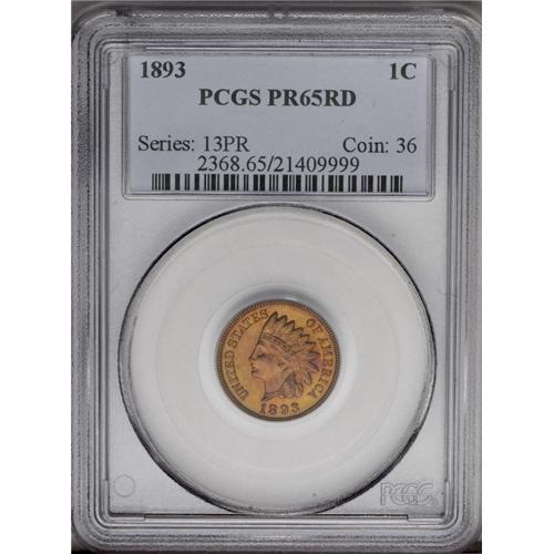 1893 1C PR65 Red PCGS. A melange of crimson, copper-go 1893[1C] PR65 Red PCGS.