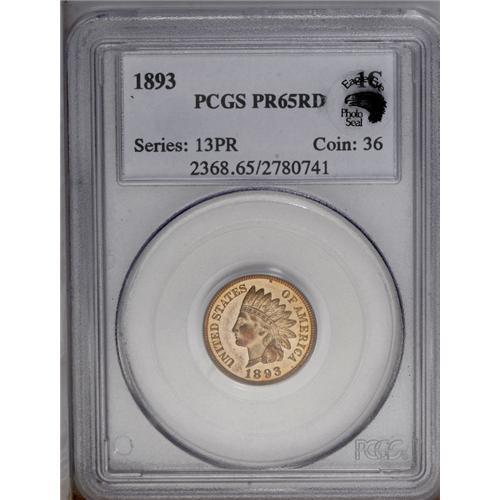 <B>1893 1C PR65 Red PCGS.</B></I> Eagle Eye Photo Seal. Warm cherry-red luster envelops both sides of this boldly struck specimen. There are no conspicuous distractions, and the fields are appreciably bright, particularly at direct light angles. Population: 27 in 65, 7 finer (1/06).