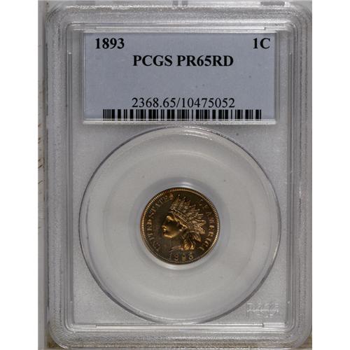 1893 1C PR65 Red PCGS. Reddish-orange accents appear o